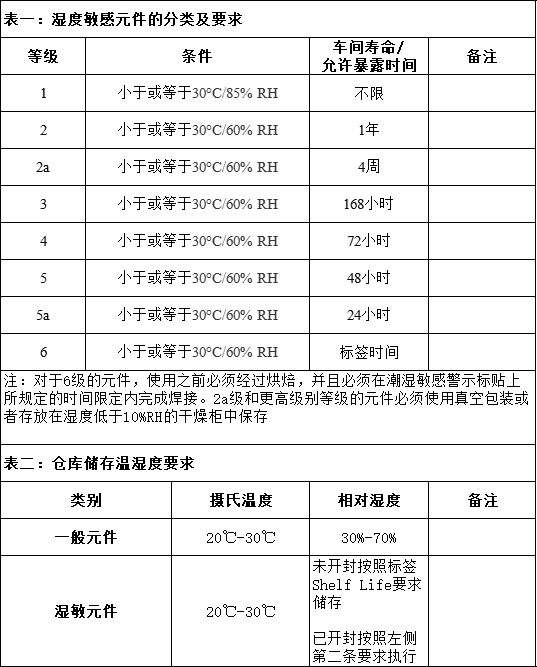 湿敏元件储存要求