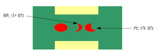 不可接受:如果有環形膠點,然後其他膠點的情況屬於上圖中不可接受的情形中的膠點的情況,那麽這箇環形膠點就認爲是不可接受的。