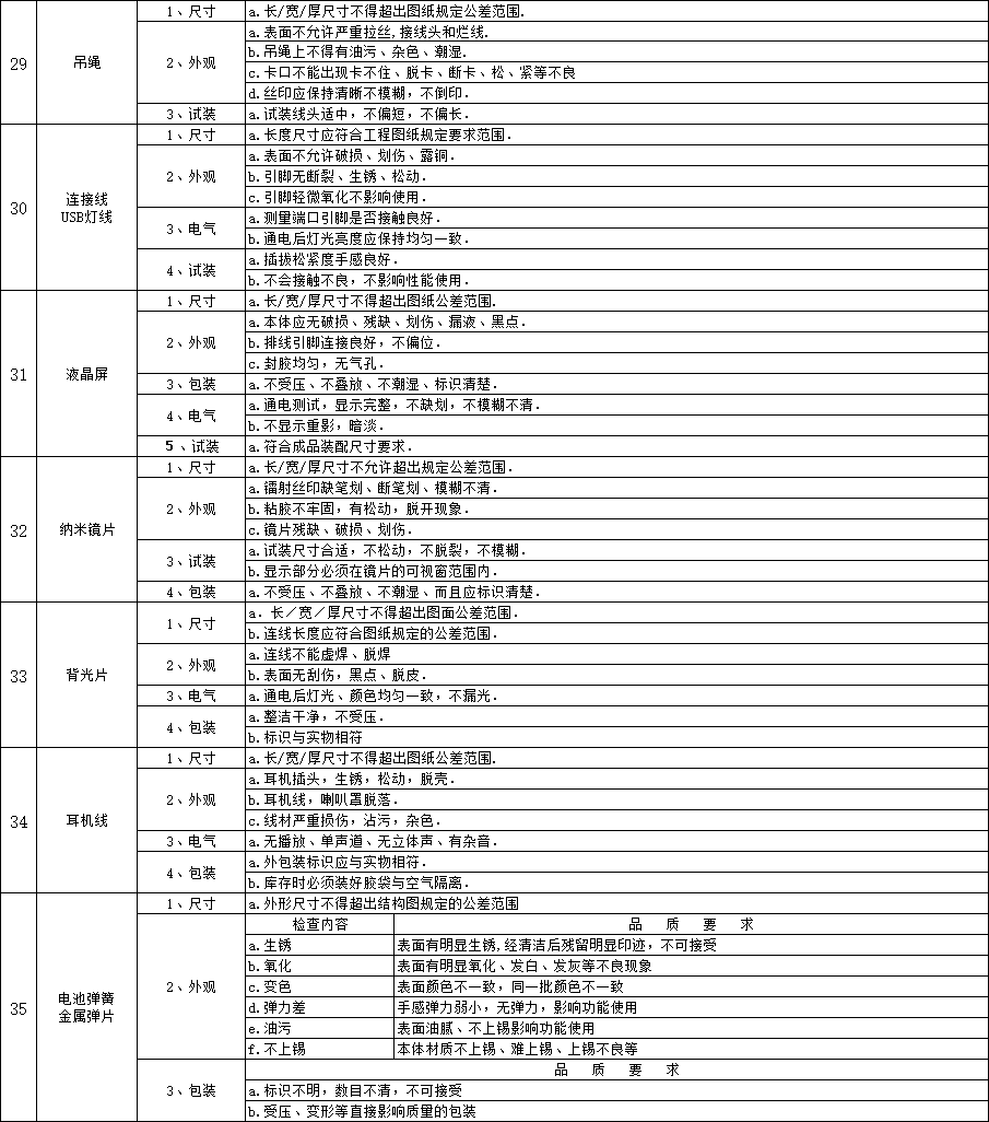 IQC來料檢驗標準