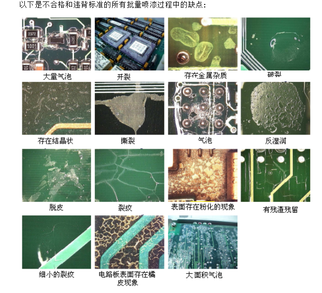 在電路闆的兩側,噴漆塗層必鬚均勻,一緻,平滑和有光澤併且不能看到縫隙。