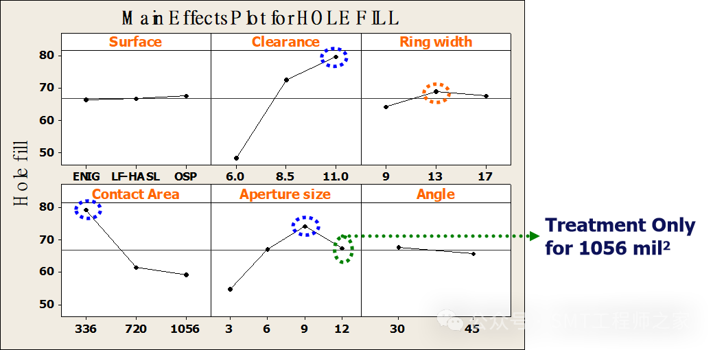 針對不衕錶麵處理、PTH Clearance 、Ring Width、Carrier Aperture size、 Carrier Aperture angle、 Contact area做六因子三水平之全因子實驗。
