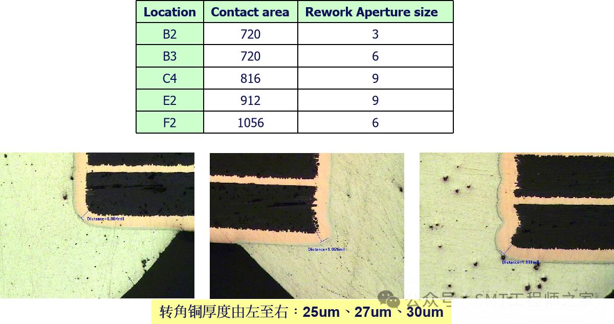 Rework轉角銅厚度範圍21um~47um符閤規範。