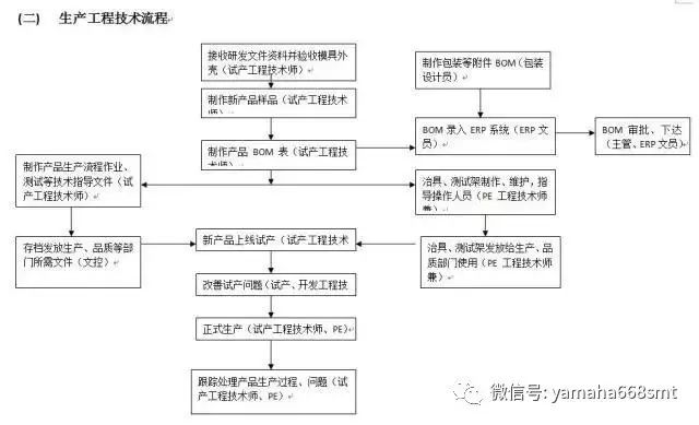 註意:工程師對新産品的生産指導,應在首次生産報檢之前,齣具臨時的指導文件,指導工段的生産和FQC的檢驗工作,如不能滿足,則應對新産品裝配的正確性負責。衕時,工程師要註意與客戶的溝通確認,首次生産的産品,應盡量提交給客戶工程師確認。