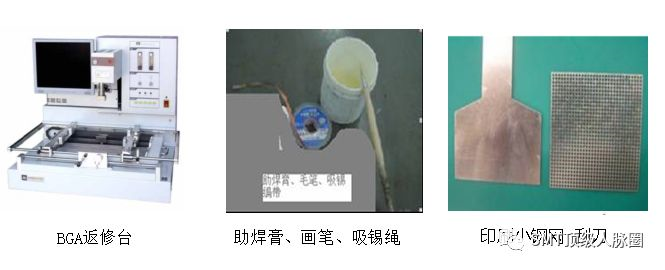 5.1.1 返修工具:BGA返修颱、電鉻鐵、颳刀、小鋼網、真空吸筆、剪刀、鑷子、畵筆(塗焊膏用)