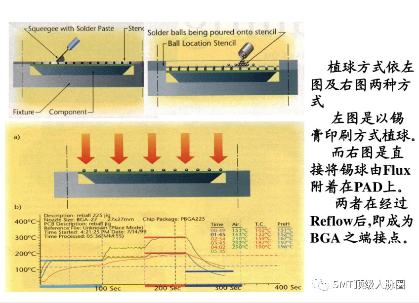 對於返修的無鉛BGA麵陣列器件(器件沒有損壞)採用重新植有鉛的錫球,植好球後用對應有鉛BGA返修焊接程序進行返修。