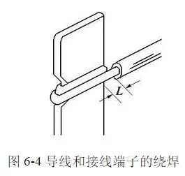1)导线和接线端子的绕焊,是把经过镀锡的导线端头在接线端子上绕一圈,然后用钳子拉紧缠牢后进行焊接;在缠绕时,导线一定要紧贴端子表面,绝缘层不要接触端子,L应等于或小于2倍线径或1.5mm,取其中较小者。