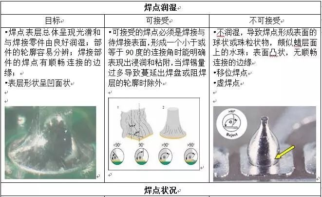 7.1.1.2 焊点上,焊料的连接面呈凹形自然过渡,焊锡和焊件的交界处平滑,接触角尽可能小。