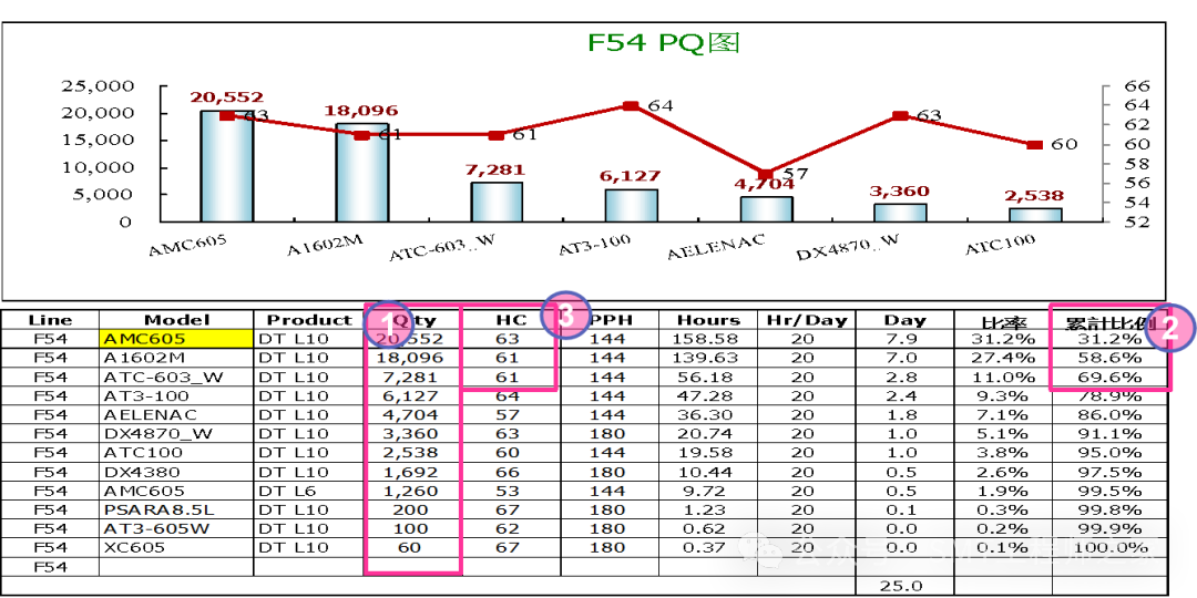 3. 根据PQ Chart 评估结果,得出当线标准人力