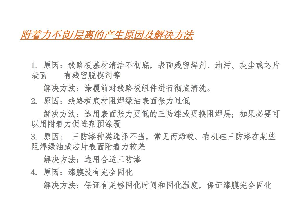 三防漆出现分层的现象,主要出现在元器件和阻焊层上。