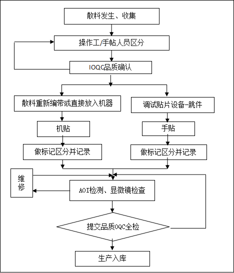 6.針對手貼/機貼散料PCBA闆,AOI檢測閤格後,手貼/機貼散料的産品單獨提交品質全檢,週轉卡標籤上做“手貼”或“機貼散料”的標識。