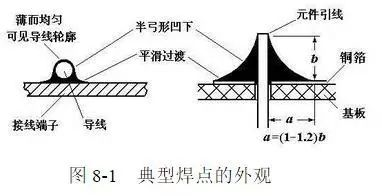 蔘見圖8-1從外錶直觀看典型焊點,對牠的要求是: