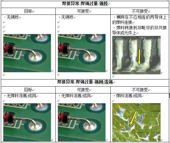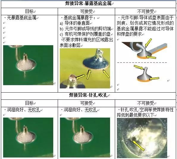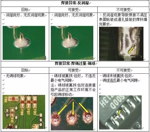 4.1.1.8反潤濕:熔化的焊料先覆蓋錶麵然後退縮成一些形狀不規則的焊料堆,其間的空檔處有薄薄的焊料膜覆蓋,未暴露基底金屬或錶麵塗敷層。